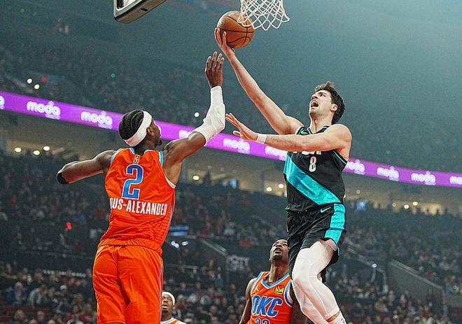雷霆客场对阵开拓者,雷霆缺少了哈滕、卡鲁索,开拓者缺少了利拉德、霍勒迪、克林根、亨德森、赛布尔,战力折损远超雷霆,本以为雷霆能轻松赢球,没想到开拓者打出优异表现,长时间咬住分差,一度领先雷霆,不过最后几分钟雷霆展现出了优势,最终雷霆以8分优势击败开拓者。亚历山大15中8得到26分4板5助,切特15中9得到19分9板3帽,开拓者方面阿夫迪亚14中6得到31分19板10助,卡马拉12中5(三分10中5)得到19分8板4助。